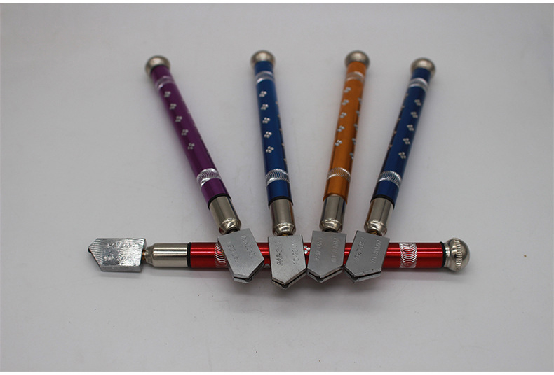 手柄材料分:铝柄玻璃刀,红木柄玻璃刀,塑料柄玻璃刀,古铜柄玻璃刀。手柄材料更多考虑使用者的手感,配合力度所承受的强度及产品的美观。形状及使用方式:直柄手握式玻璃刀,歪式玻璃刀,T型推刀,圆规刀,板式玻璃刀,带煤油刷的玻璃刀,带有稳定架的玻璃刀,刀头可旋转并前后摆动的新型玻璃刀,仿韩滚轮刀,德式玻璃刀,日式玻璃刀等。