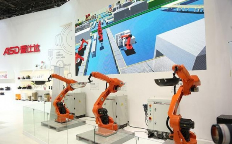 而努力去实施“机器换人”和智能工厂的建设也是其有效手段之一。爱仕达一方面打造国际领先的炊具智能新工厂,树立行业新标杆,争做行业的探索者和领导者;另一方面投资智能制造产业链,在2016年收购钱江机器人51%股份后,结合钱江工业机器人产业优势,打造智能制造生态系统,为实施智能制造战略注入动力。