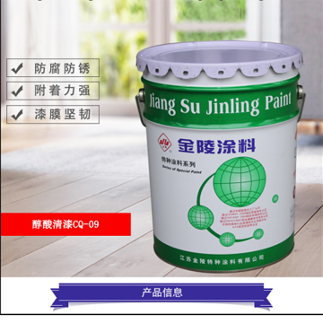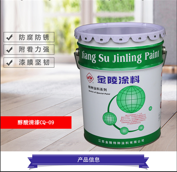 产品说明由长油度醇酸树脂、催干剂、助剂及溶剂等组成。漆膜光亮,具有良好的耐侯性、耐水性和耐油性,具有良好的柔韧性、附着力及耐海水冲击性能。产品用途适用工矿企业、民用建筑、工业设备及钢结构工程等等室内外钢结构作保护和装饰面漆之用。物理特性颜色无色体积固体分45±3%推荐膜厚干膜:30μm湿膜:65μm 理论用量0.065kg/㎡ @30μm表干(23±2℃)≤8h实干(23±2℃)≤18h完全固化(23±2℃)7d 表面处理前道漆应完全干燥;