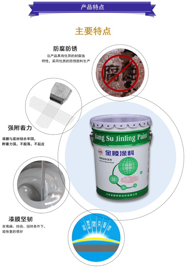 其他方面:施工时应有良好的通风,在涂装时要防止周围环境造成对漆膜的污染,例如:喷砂,漆雾灯。避免在有雨、雪、雾、沙尘暴的情况下进行施工,强风或多污染的区域停止施工,过强的通风会使涂层干燥过快而使涂料的施工性变差,大量的污染物(如沙子、盐粒、腐蚀沉积物)将造成涂膜性能变差,损耗增大。包装20kg/桶说明产品应存储于阴凉、干燥、通风,符合消防安全要求的仓库内,仓库温度不超过40℃。生产之日起,23℃下为12个月。当温度高于23℃时,储存期缩短。 实际损耗量根据被涂工件的形状、板面状态、气候条件以及涂装方法等诸多因素会产生一定的损耗变动。