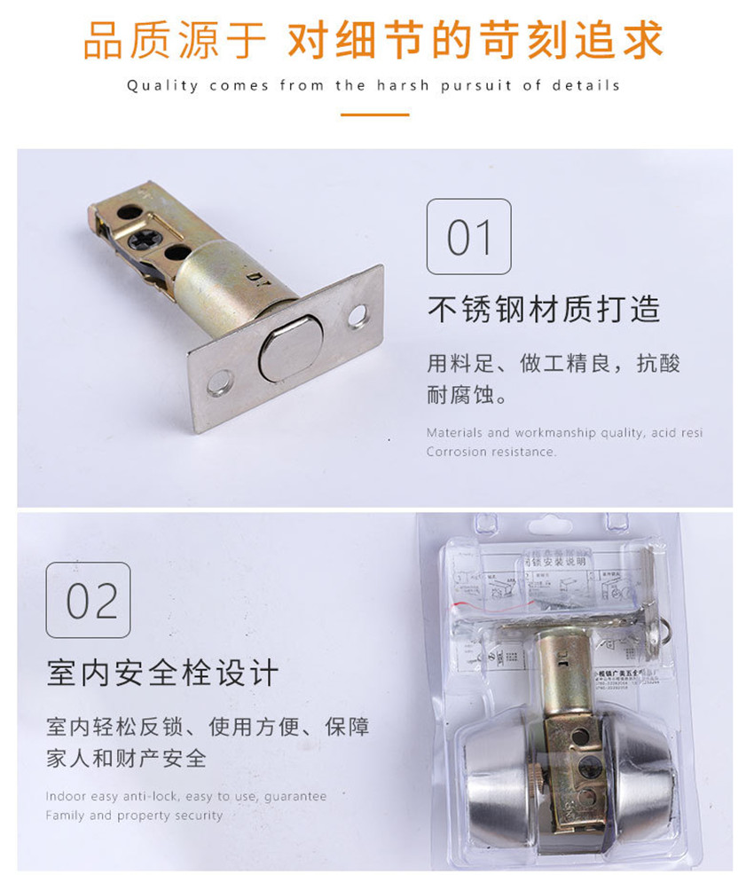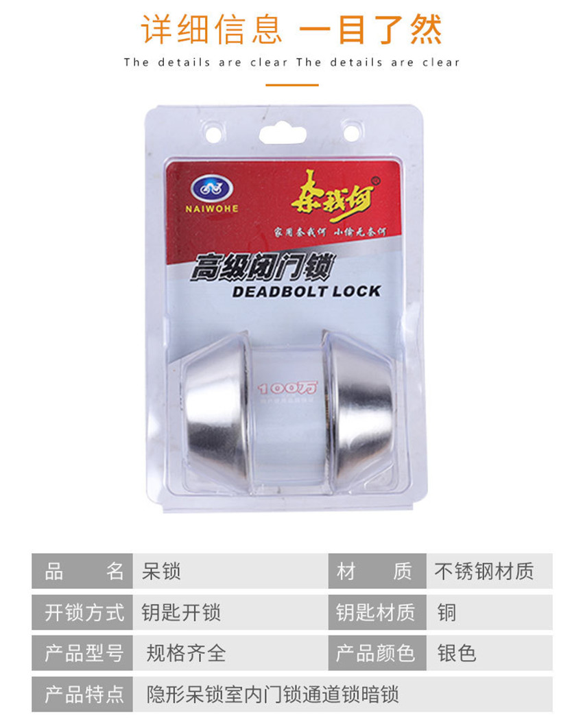 呆锁 闭门锁 家用房门通道圆形门锁 无把手隐形门锁