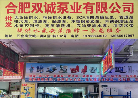 合肥双城泵业有限公司批发各类排污泵、潜水泵、离心泵等各类水泵产品,并提供水泵安装和维修一条龙服务。