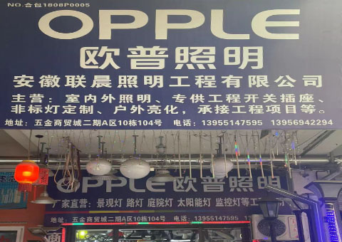 安徽联晨照明工程有限公司位于安徽国际五金机电商贸城A区10栋104号,我公司是一家主营工程照明业务的公司,我公司主营业务有室内外照明、专供工程开关插座、户外亮化、承接工程项目等。
