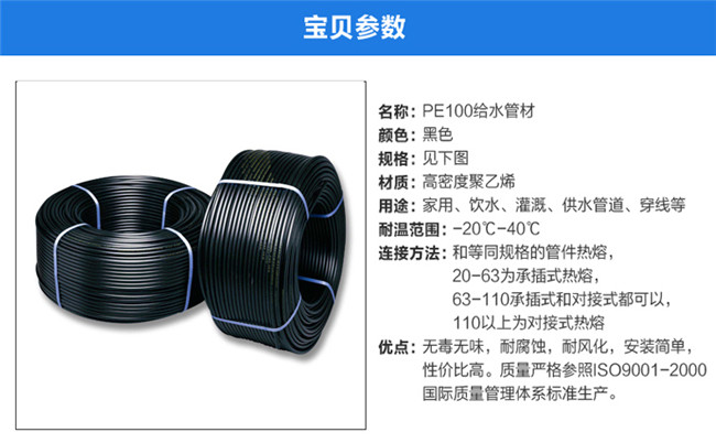 金牛PE水管管材 PE盘管PE自来水管 PE给水管配件管件