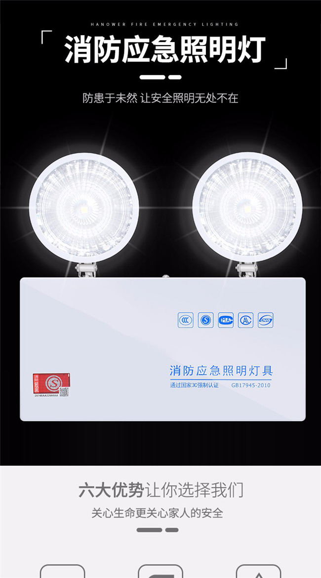 应急灯消防应急灯应急照明灯充电式双头应急灯 安全出口指示灯