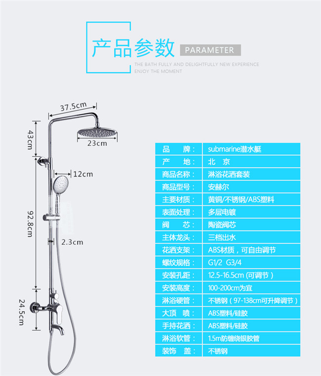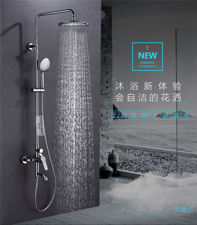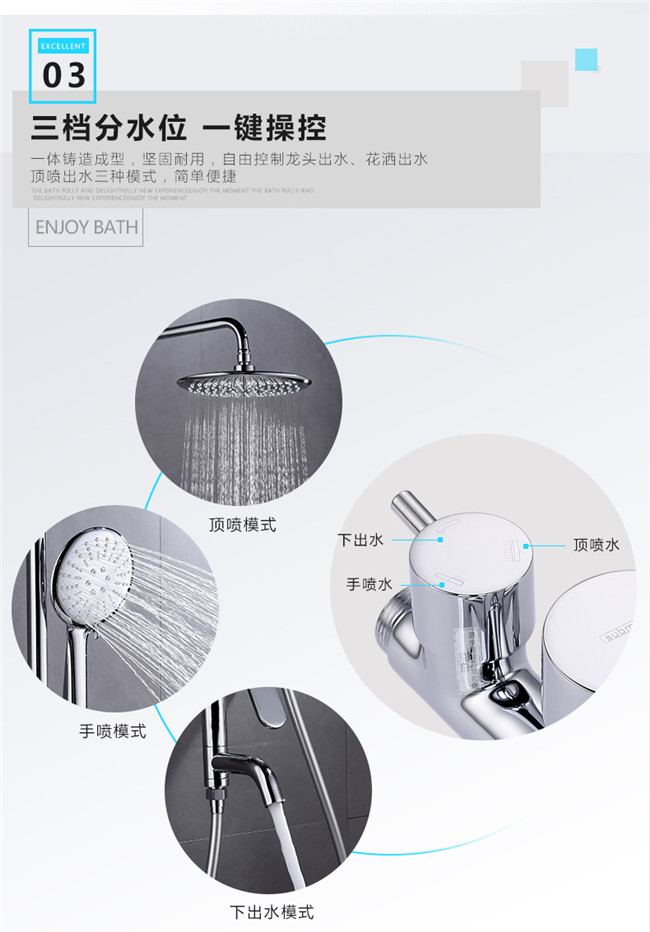 铜淋浴花洒套装可升降方形顶喷带下出水冷热水淋浴双出水