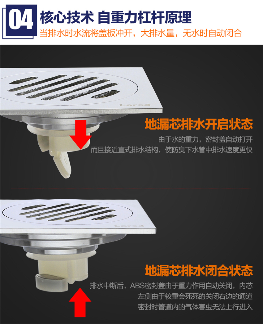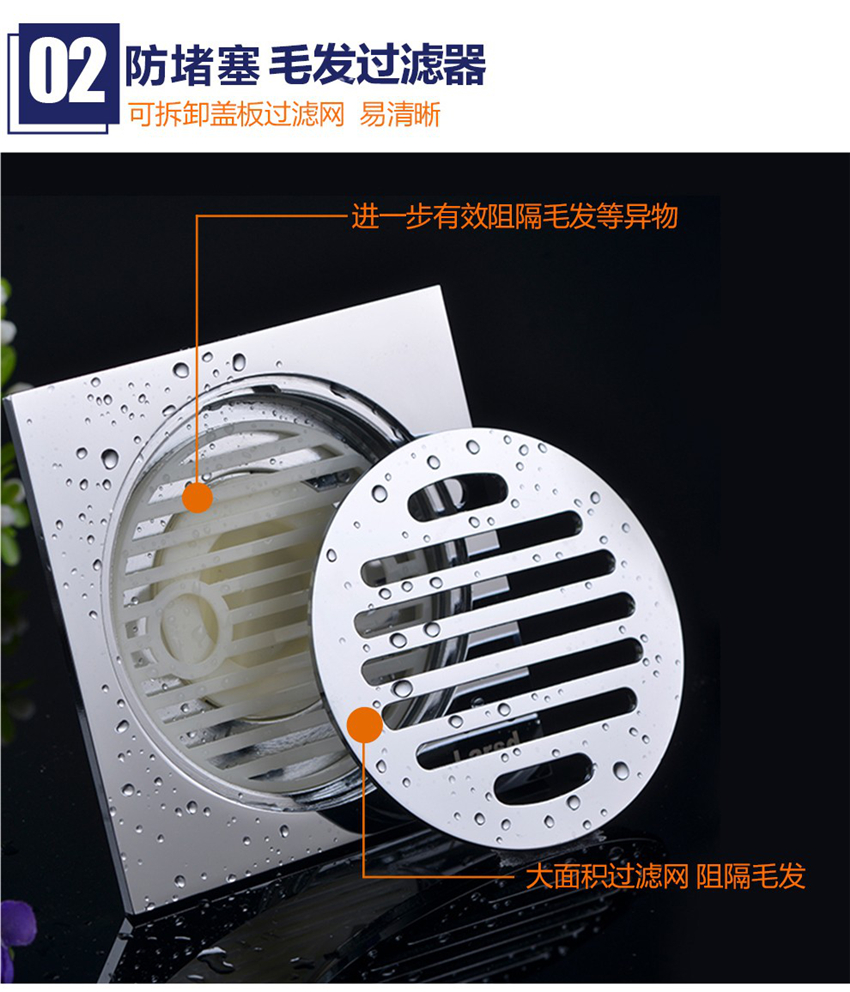 高效防臭地漏 超薄大流量全铜自动密封式地漏