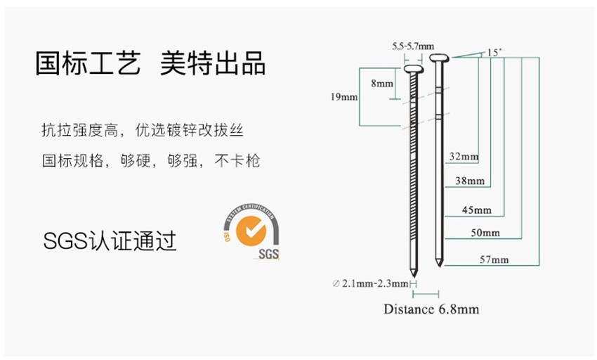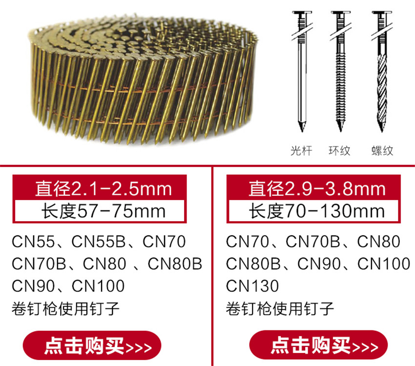 螺纹钉光杆钉CN1234567890卷钉枪钉子木屋包装箱托盘钉 2.3*55mm螺蚊卷钉