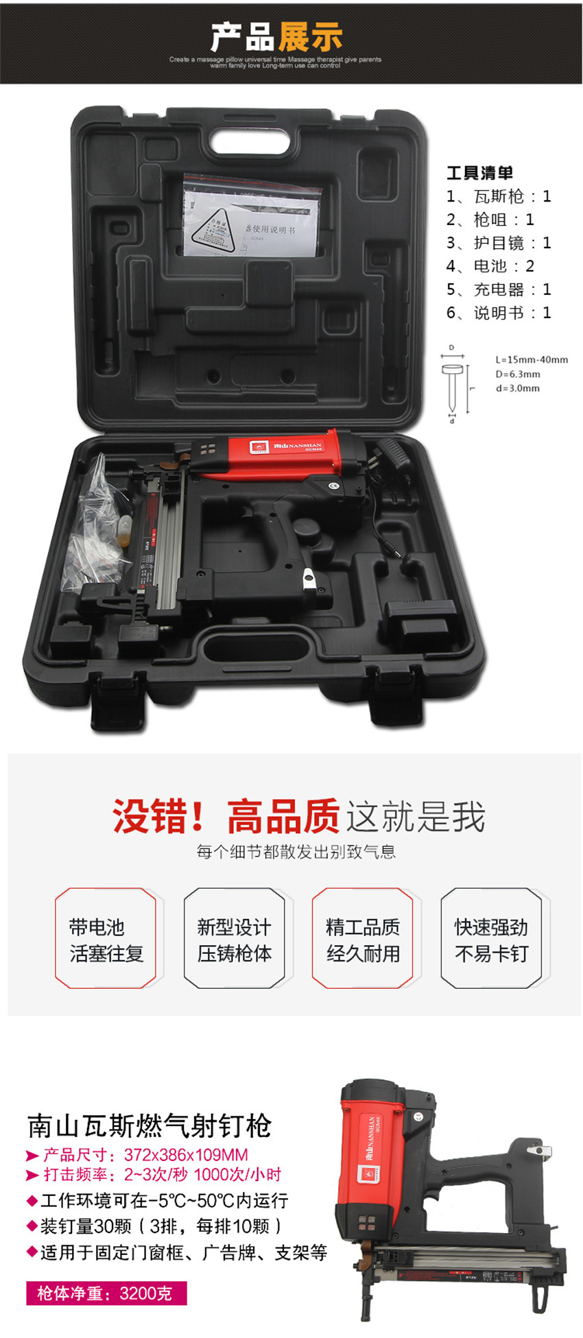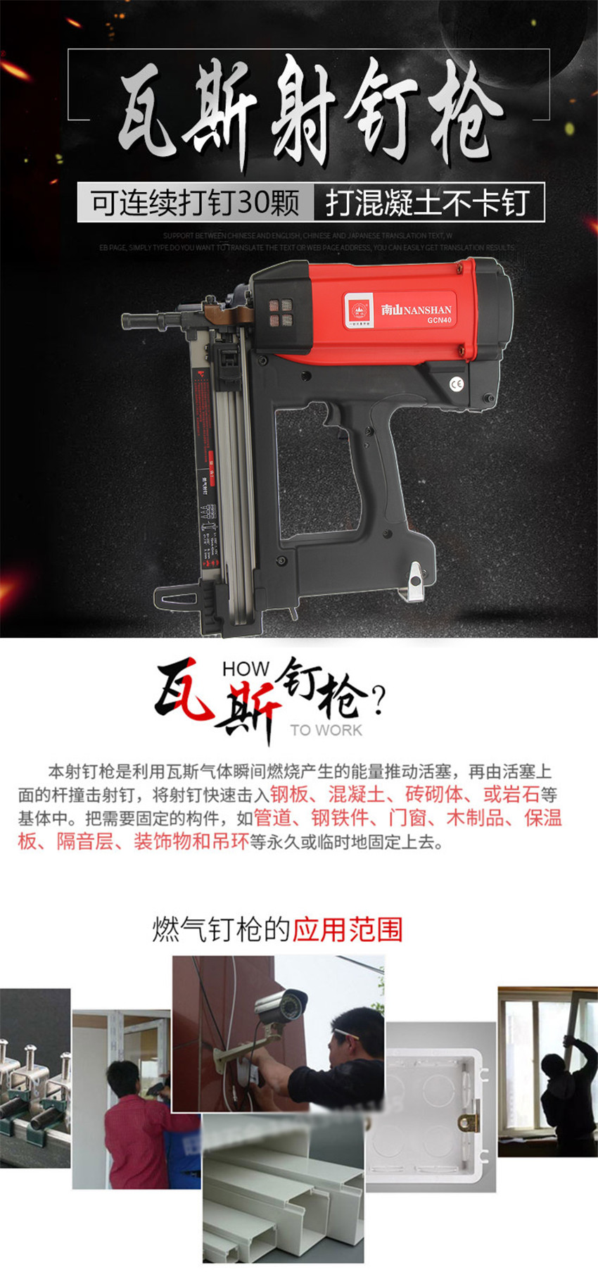 瓦斯射钉枪射钉器门窗用瓦斯射钉枪打钉枪可打混泥土钢板充电式燃气