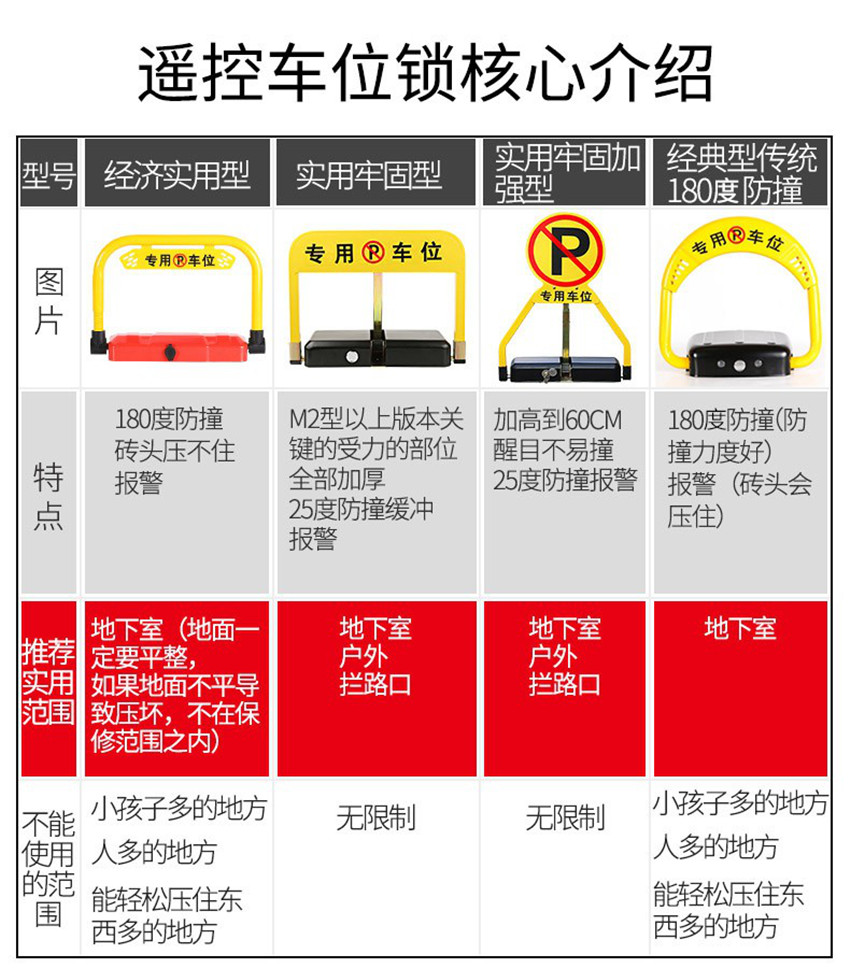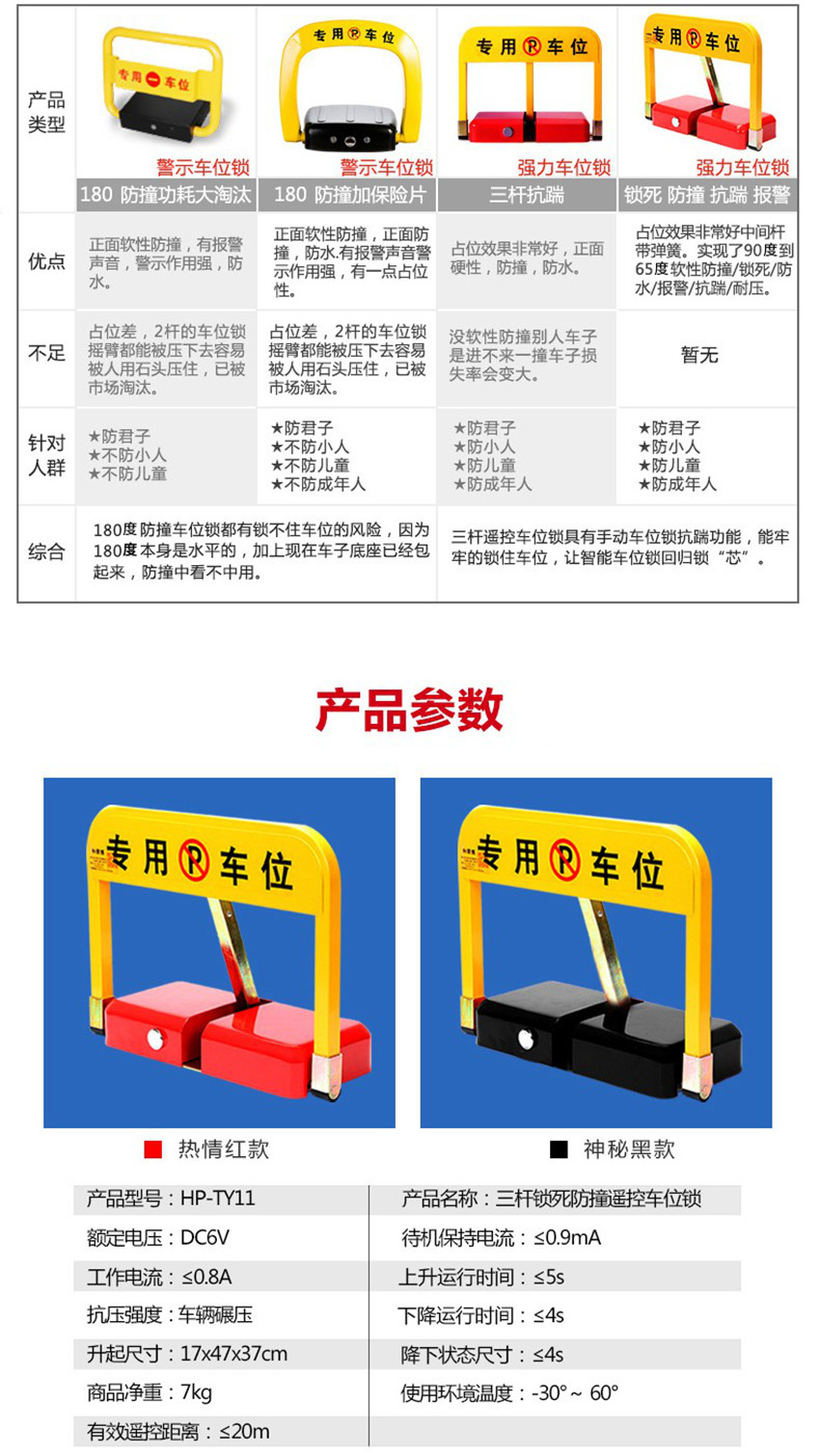 遥控车位锁地锁 加厚防撞感应停车位地锁 车库车位桩双重锁 组合型干电池感应款