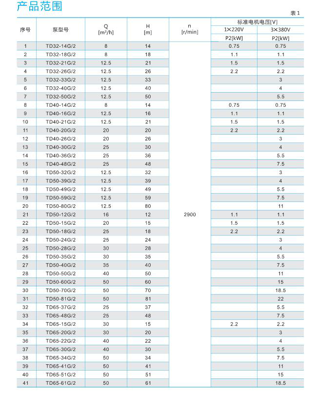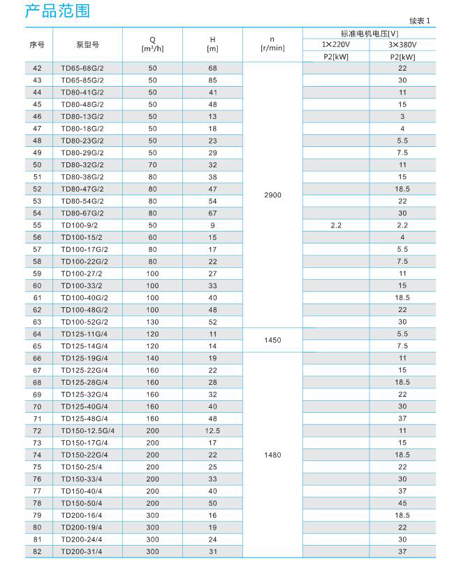 铸铁产品说明:南方泵业TD单级立式管道循环泵,泵进出水口在泵底同一直线上,产品设计为顶部可拉出的拆装形式,其可以在不影响管路系统的情况下对泵进行维修。性能及优点:结构紧凑