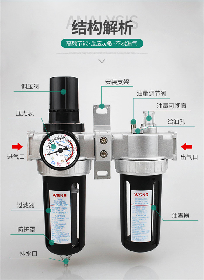 山耐斯油水分离器空压机气泵吹尘用气源处理器过滤器油雾器二联件