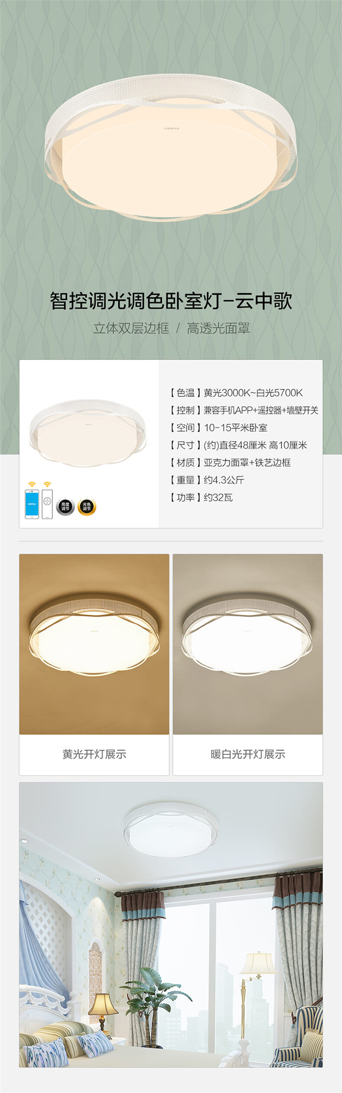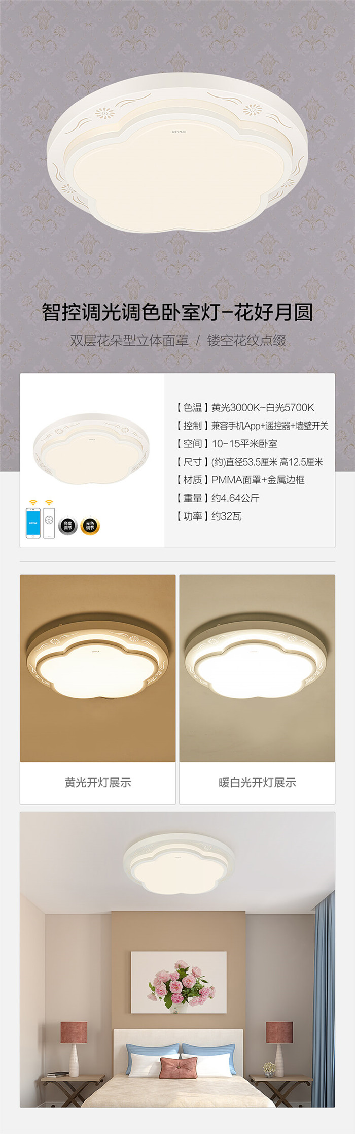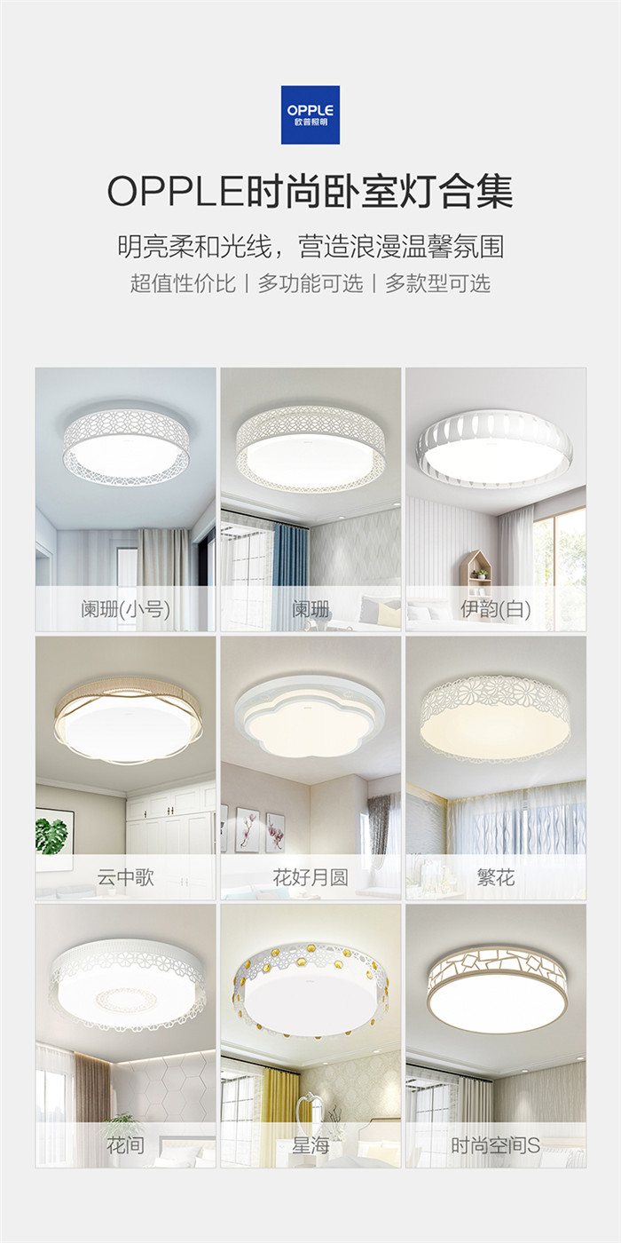 欧普照明 led圆形温馨卧室房间餐厅吸顶灯具 大气现代浪漫简约WS