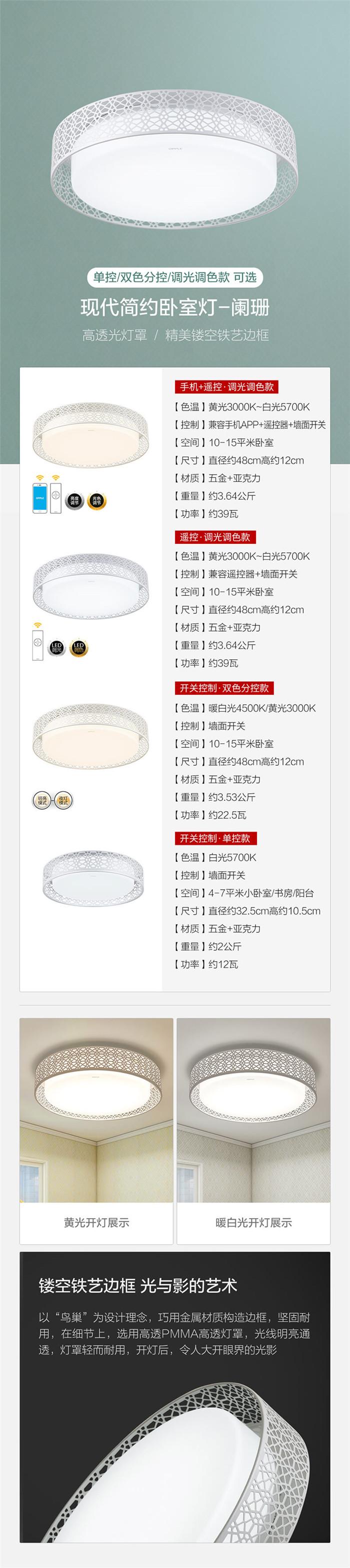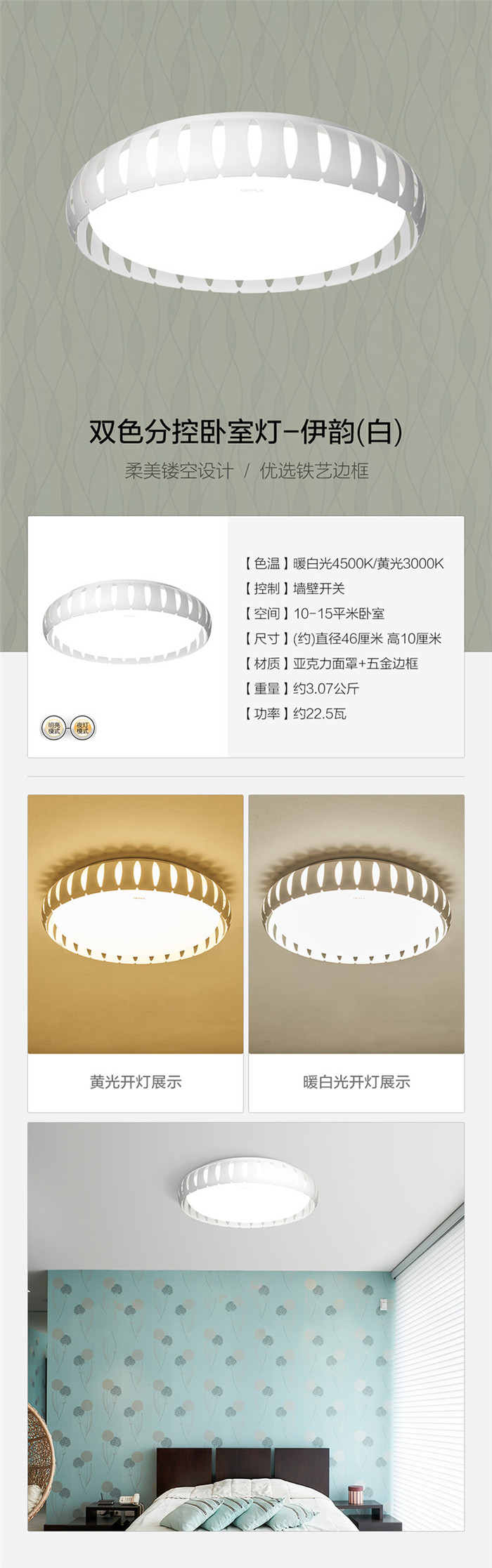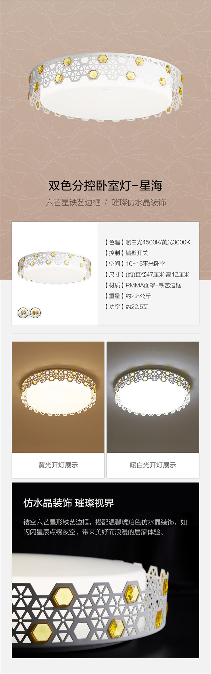欧普照明 led圆形温馨卧室房间餐厅吸顶灯具 大气现代浪漫简约WS