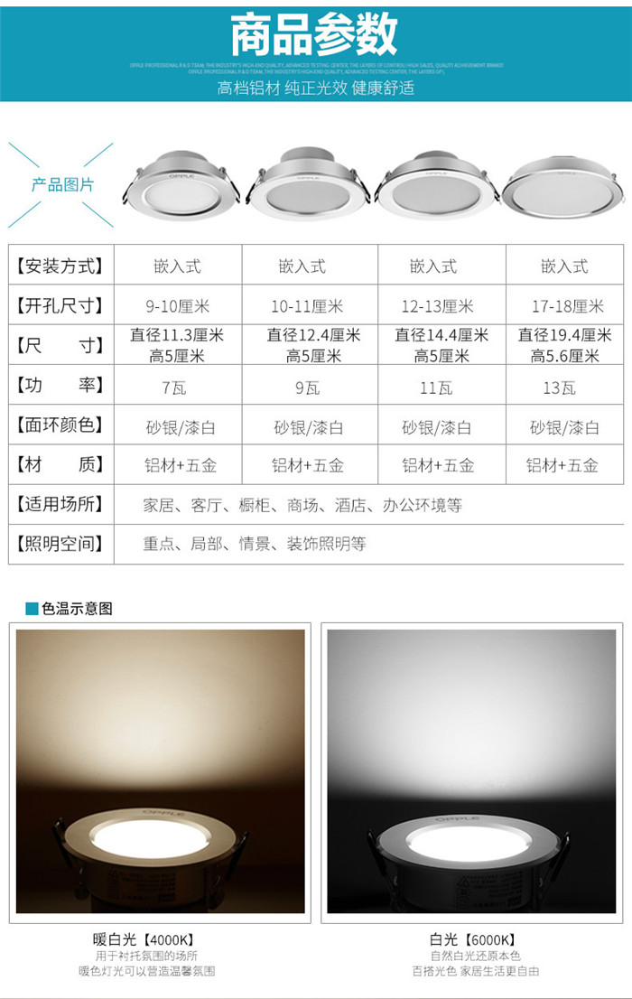 欧普led筒灯7w9公分超薄天花灯客厅吊顶灯嵌入式孔灯过道筒灯