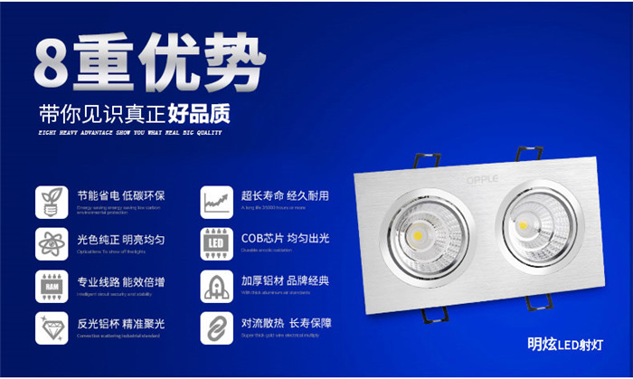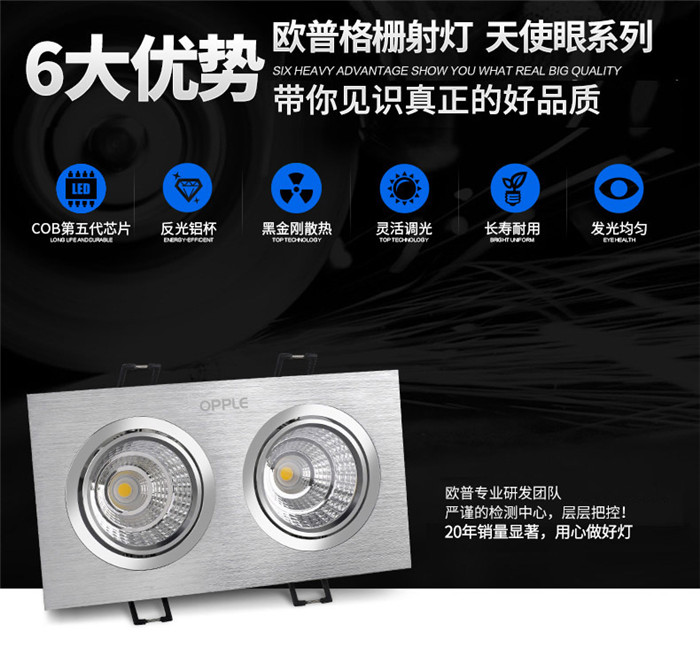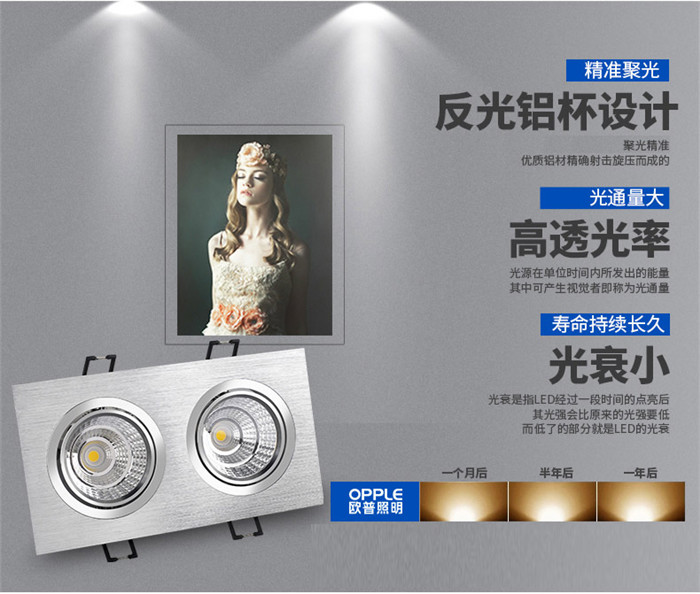 欧普led射灯双头cob格栅斗胆灯嵌入服装店背景墙客厅走廊过道灯
