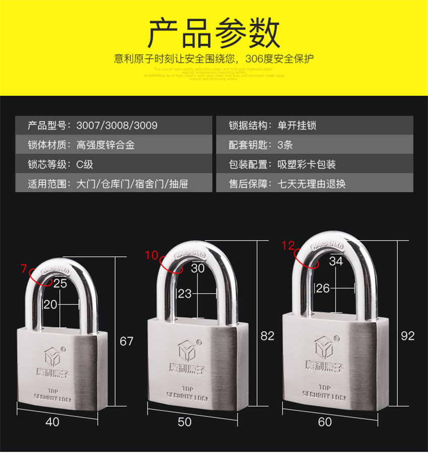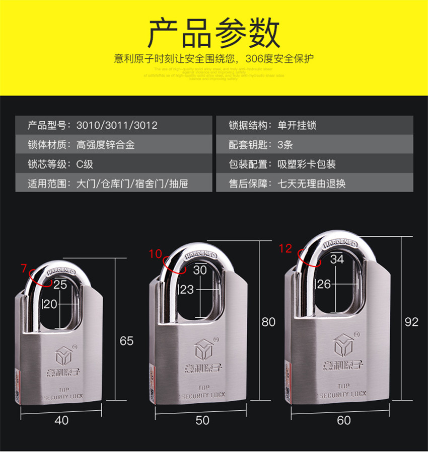 意利原子挂锁超B级叶片挂锁防盗锁防水挂锁防水防撬门窗大门锁头 防盗窗挂锁 铁门锁