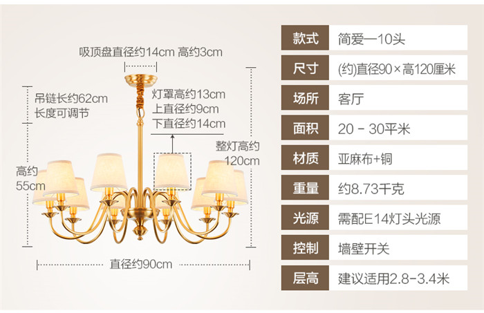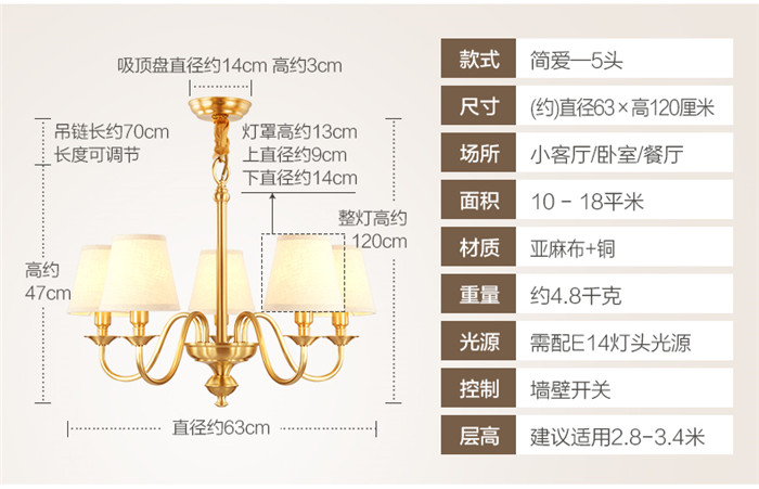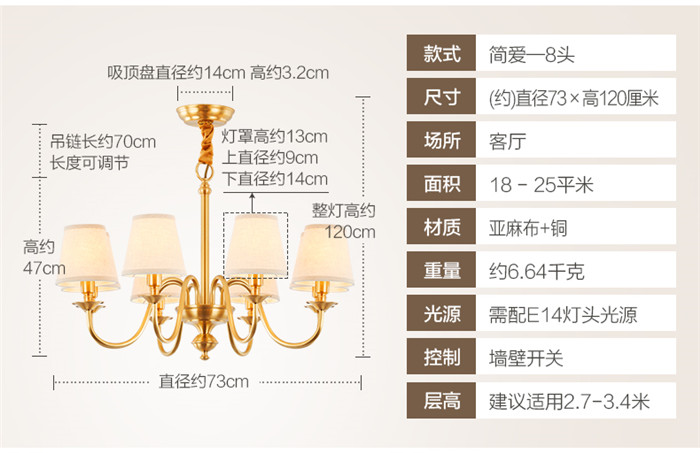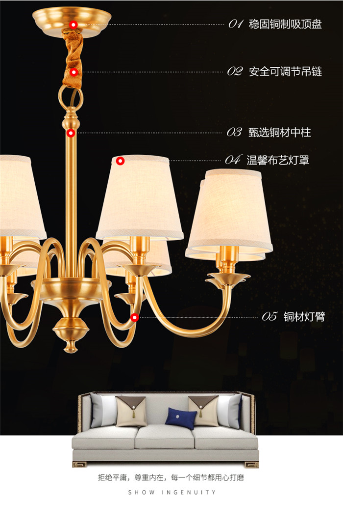 欧普照明美式吊灯客厅灯全铜灯餐厅卧室现代简约大气灯具DD