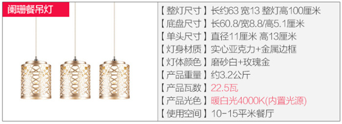 欧普照明(OPPLE) LED吊灯餐吊灯餐厅吊线灯三头单头灯具 现代简约创意CD