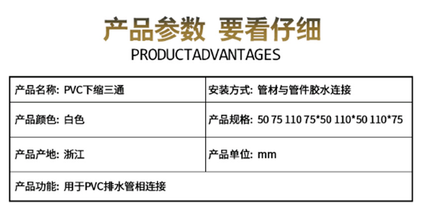pvc内外插三通 下缩三通 承插三通 排水管