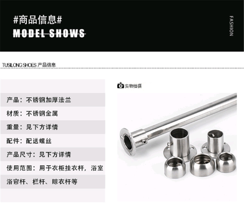 加厚重型不锈钢法兰座衣柜杆配件高脚圆管座托