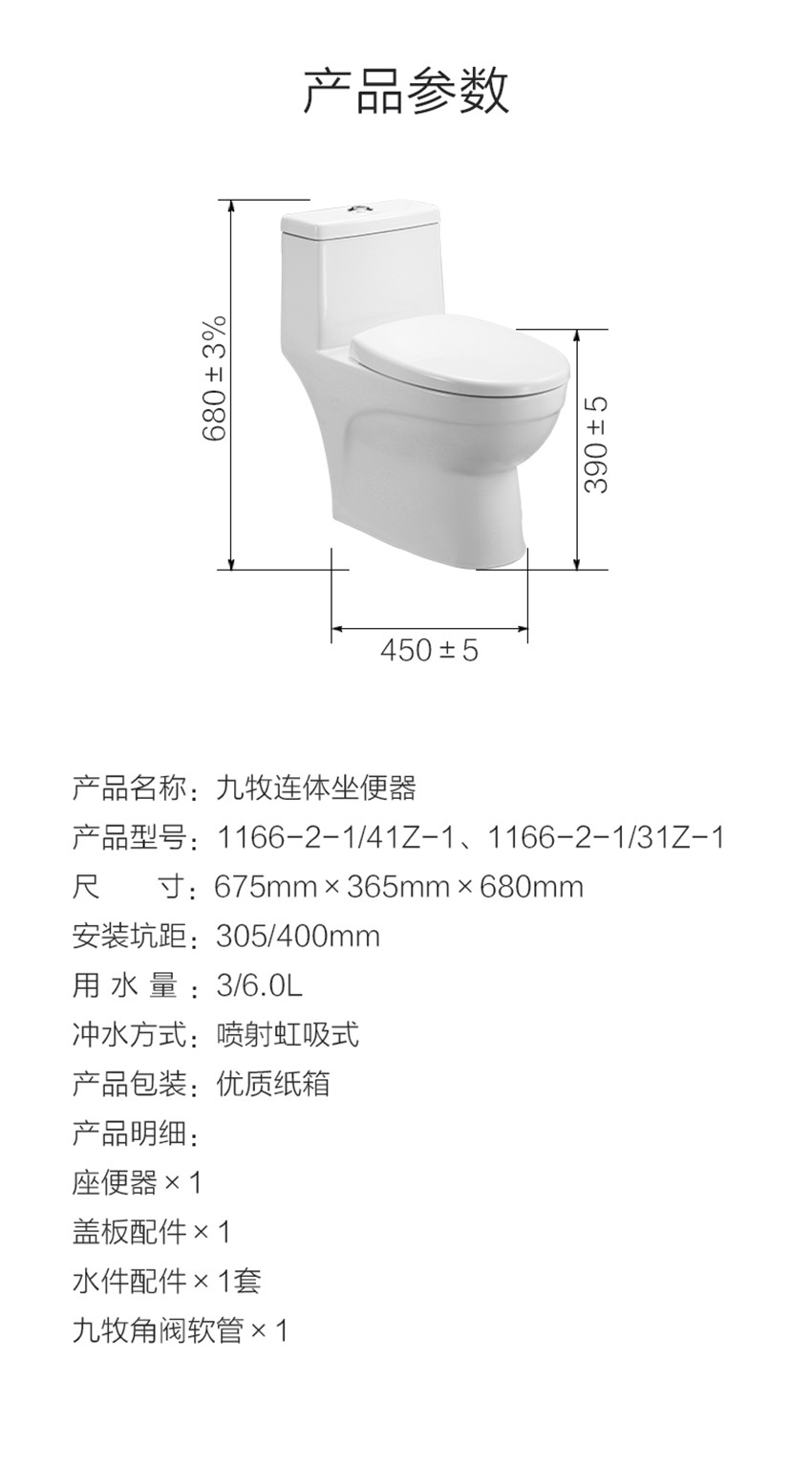 JOMOO九牧 静音抽水马桶喷射虹吸式节水坐便器 1166