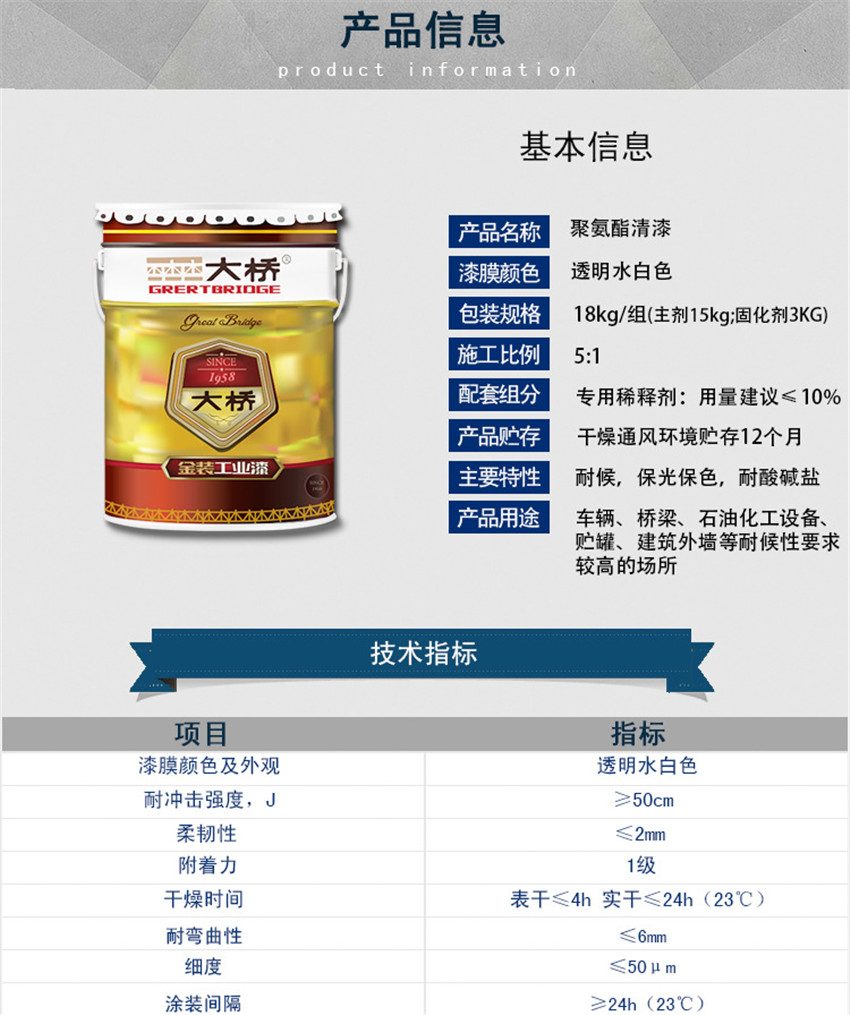 浙江大桥牌聚氨酯清漆 透明汽车罩光清漆